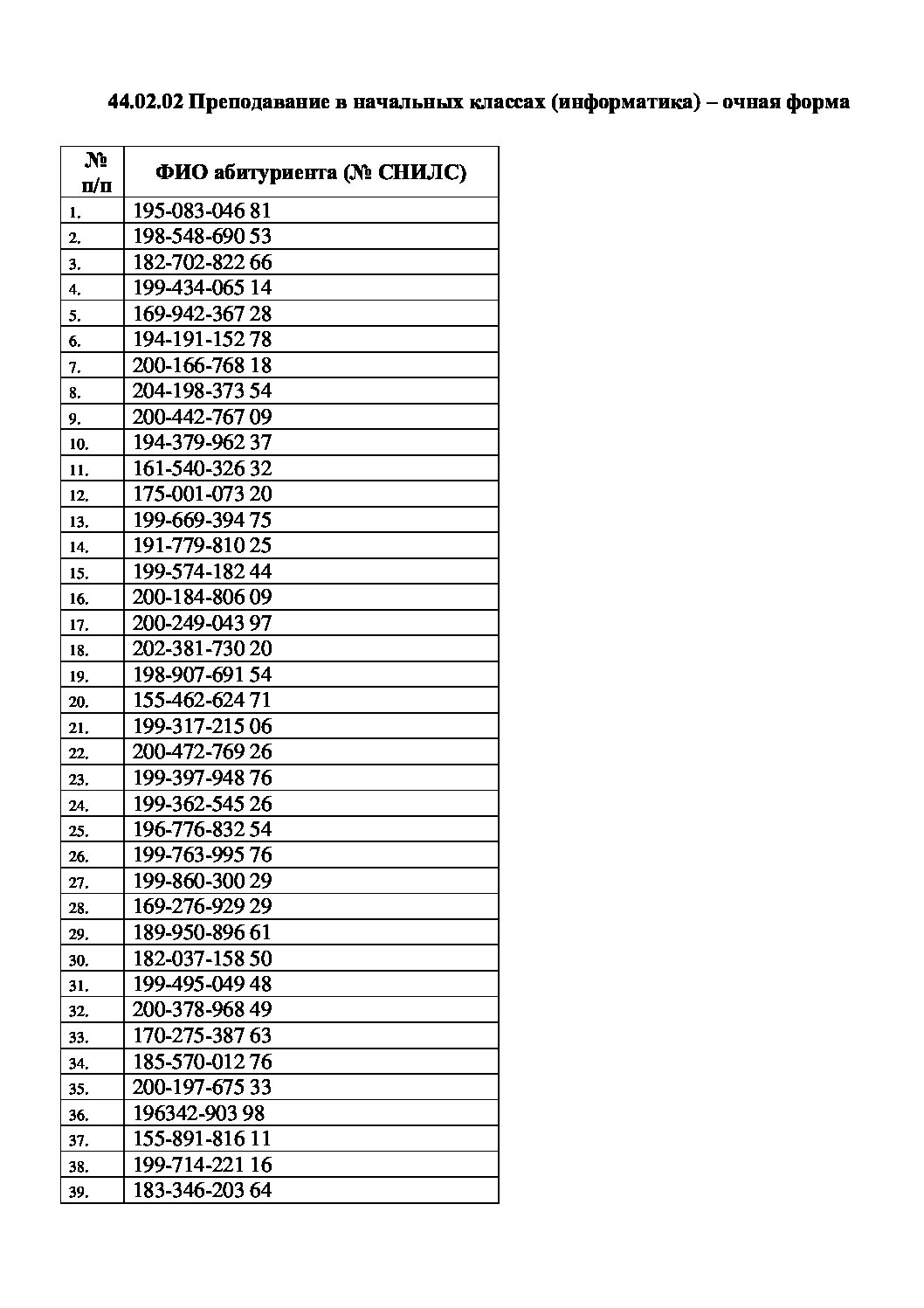 • Для очного отделения