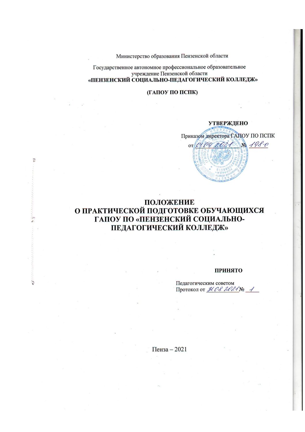 Положение о практической подготовке обучающихся ГАПОУ ПО ПСПК