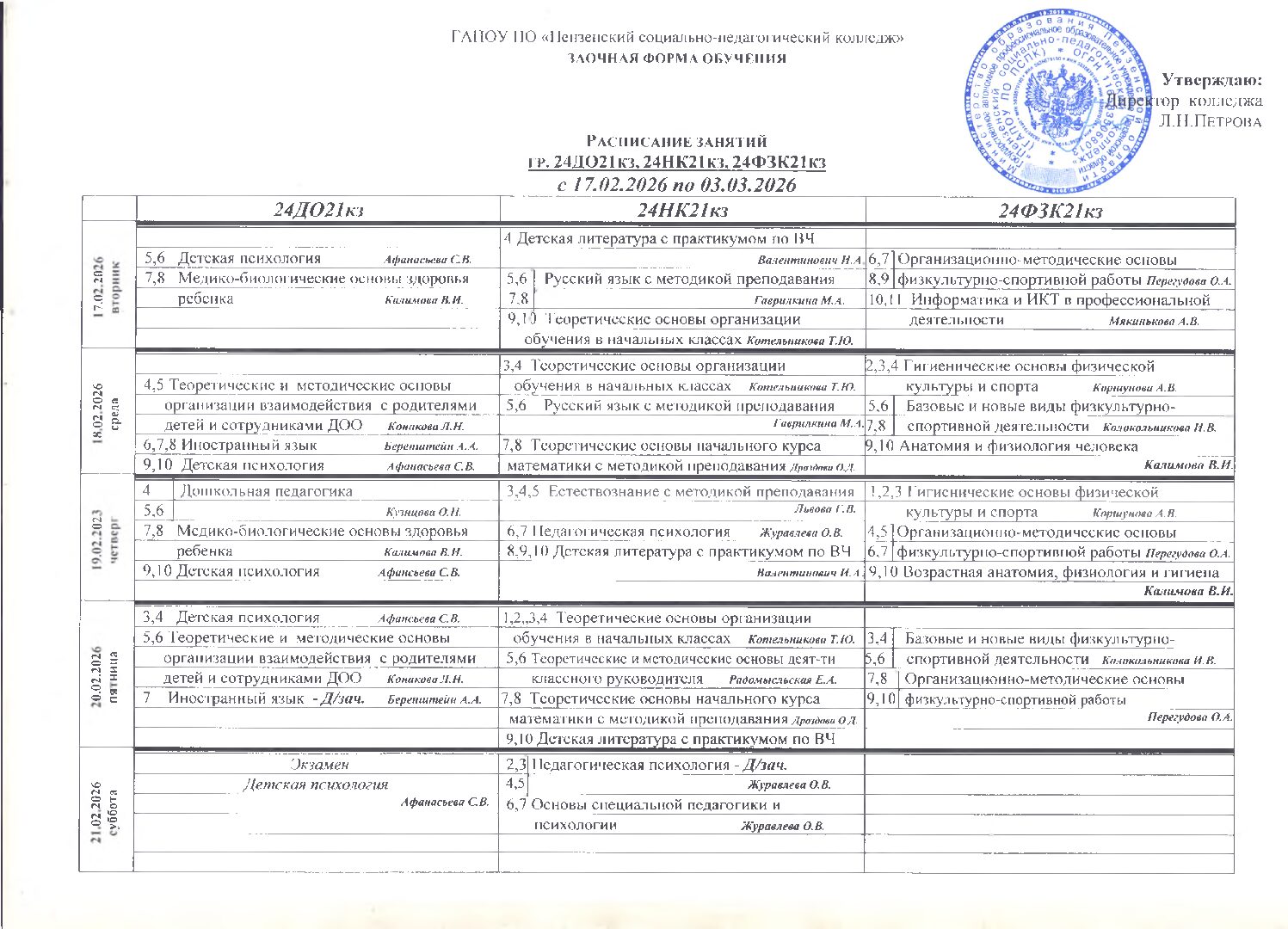 расписание занятий с 17.02.2026 г. для групп 2-го курса